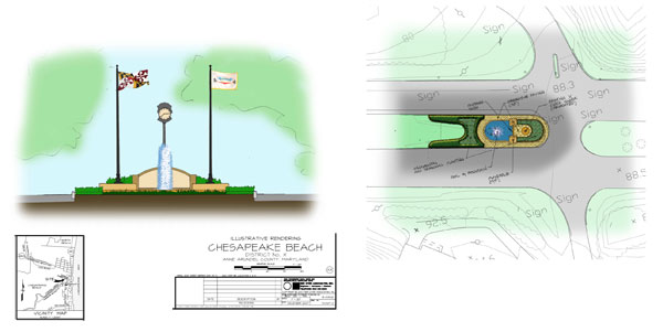 Proposed Project #3: Gateway to Chesapeake Beach - MD Rt. 260 at Town Clock - Fountain and Flags