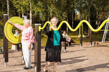 fitness program. This program wasn't geared toward youth but included elderly citizens. After the law was put into effect, parks across China incorporated equipment all citizens could use. As more people visited China from other countries and saw the equipment and increased well-being of China's seniors, they incorporated similar practices in their communities. In 2003, Finland