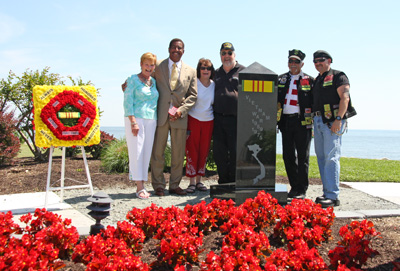 Dedication of the new Vietnam Memorial added to the Town’s Veteran’s Memorial Park (From left to right) Town’s Economic Development Director Connie O’Dell, Councilman Stewart Cumbo, Becky and Mayor Bruce Wahl, Nam Knights President Mark (Rocky) Roccapriore and Ray (Bomber) Nieves.