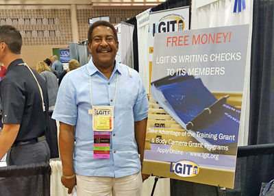 2016 MML Conference at the Local Government Insurance Trust (LGIT) Booth – Risk Management Committee Chairman Councilman Cumbo displaying Grant Money for Training, Police Body Cameras, and Law Enforcement Academy Grants to its member cities and towns
