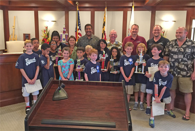 July 20, 2017 - Mayor and Town Council recognizing the Bishops Chess Team Winning Trophy Members from the Beach Elementary School.