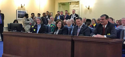 In Annapolis, members of the Maryland Municipal League Legislative Committee and other Elected Municipal and State Officials attending hearings and testifying in support of Legislation affecting Municipalities