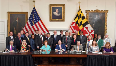 April 24, 2018: Councilman Stewart Cumbo, Municipal and State Elected Officials and Members of Maryland Municipal League Legislative Committee at the Maryland State House attending the Bill Signing of SB 516 and HB 807, restoring Municipal Highway User Revenues. Culminating 9 years of hard work.